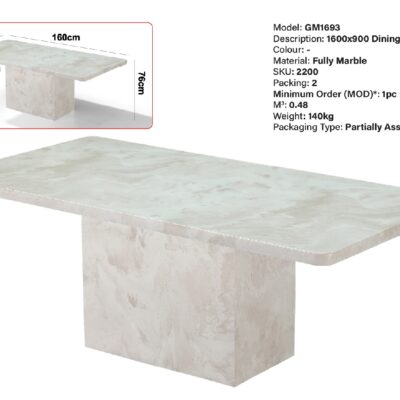 GM1693 (1600X900) FULLY MARBLE DINING TABLE (LEF)