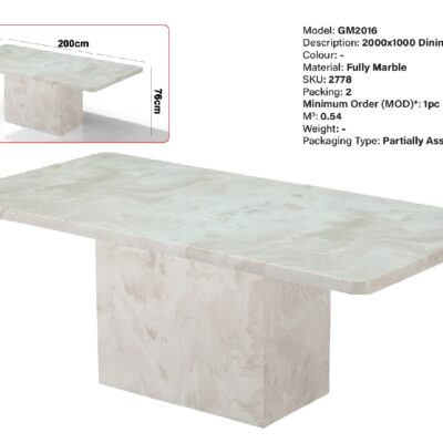 GM2016 (2000X1000) FULLY MARBLE DINING TABLE (LE)