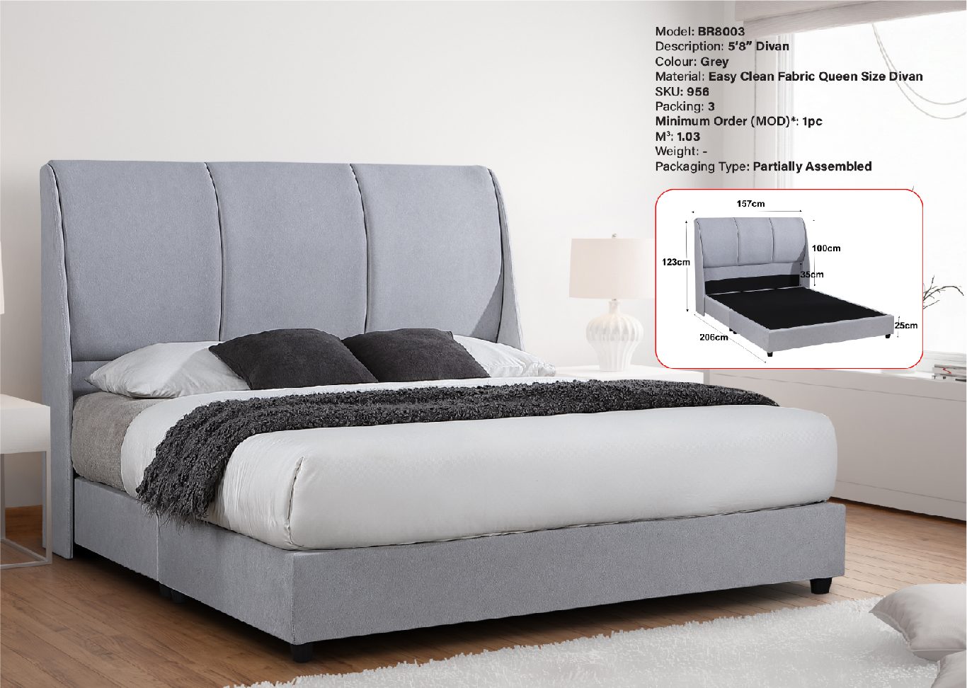 BR163 5'8" DIVAN (GREY FABRIC) (CM) (LE)