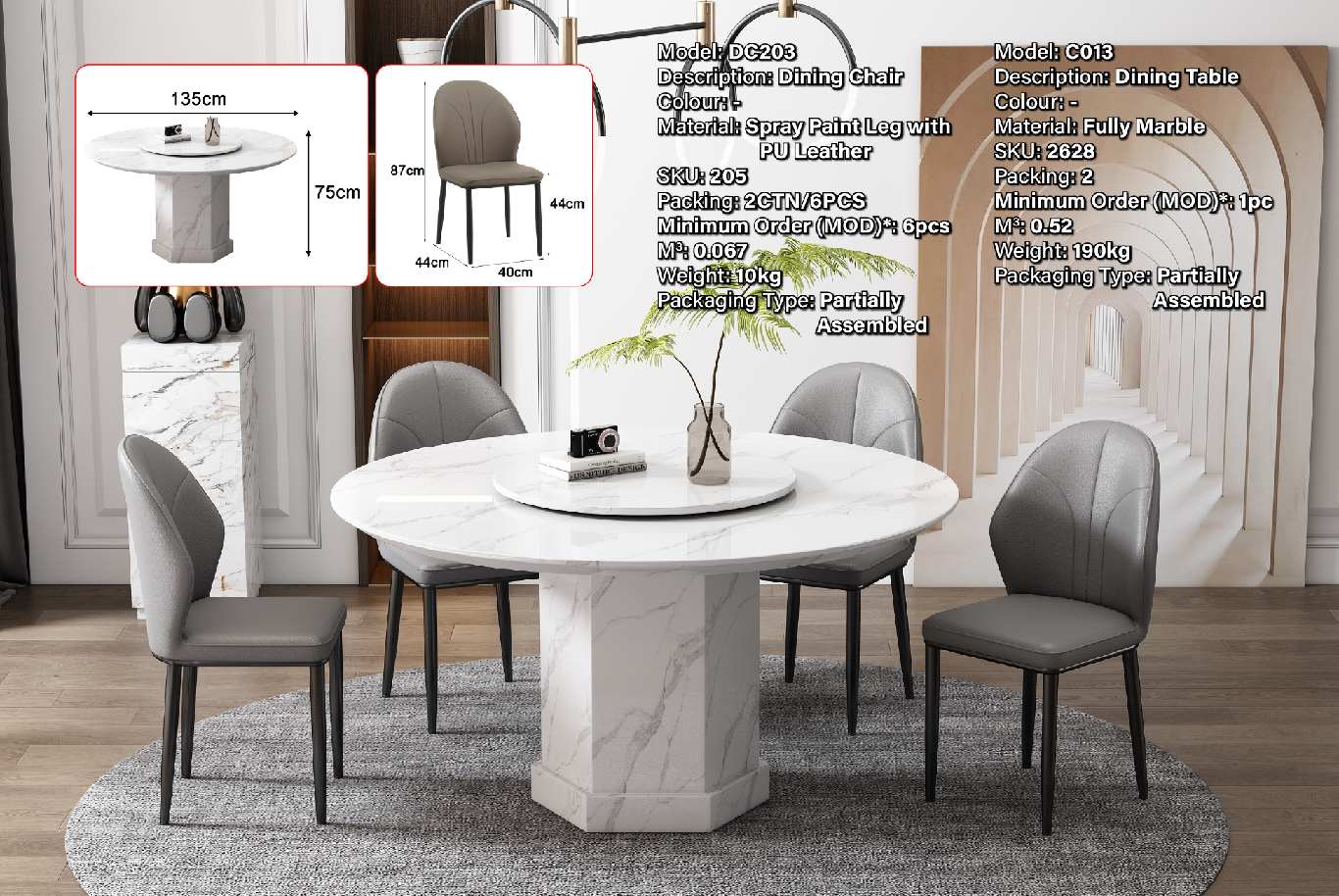 C013 (1350X1350) FULLY MARBLE DINING TABLE (LE)