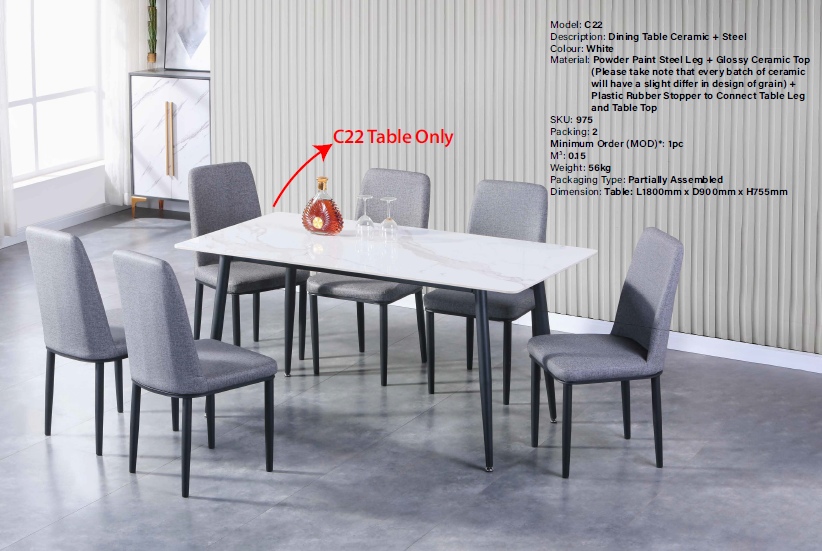 C22 (1800×900) CERAMIC DINING TABLE (CP) (LEGS)