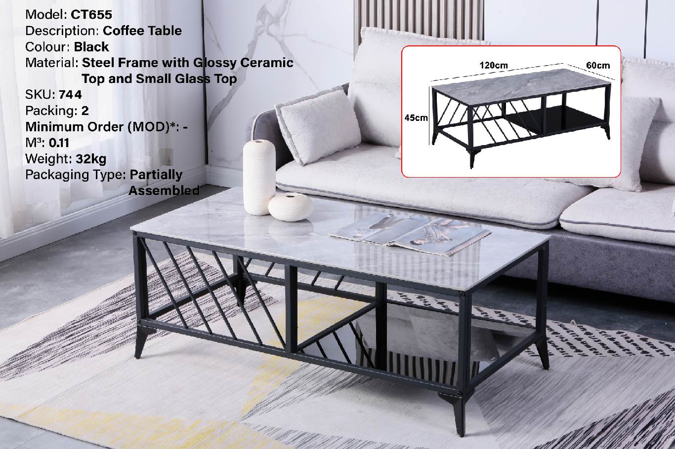 CT612A (700X500) CERAMIC COFFEE TABLE (BLACK) (CP) (CM) (CX)