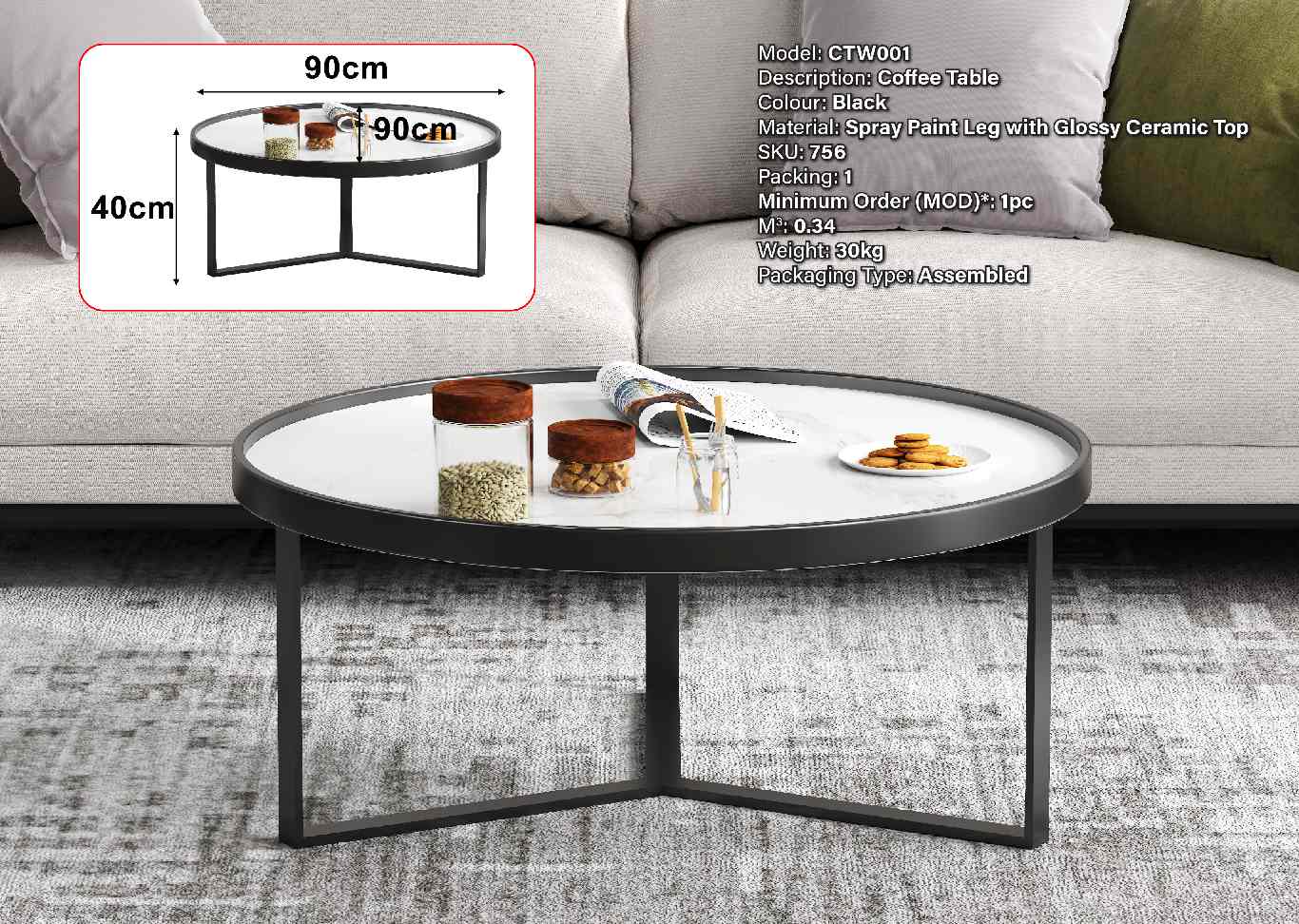 CT619 (800X600) CERAMIC COFFEE TABLE (BLACK) (CX)