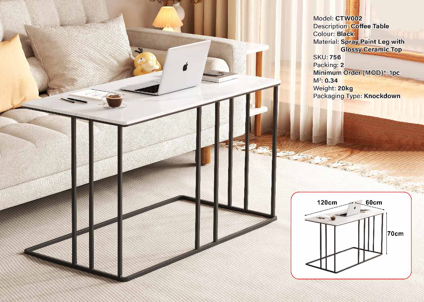 CT619 (800X600) CERAMIC COFFEE TABLE (BLACK) (CX)