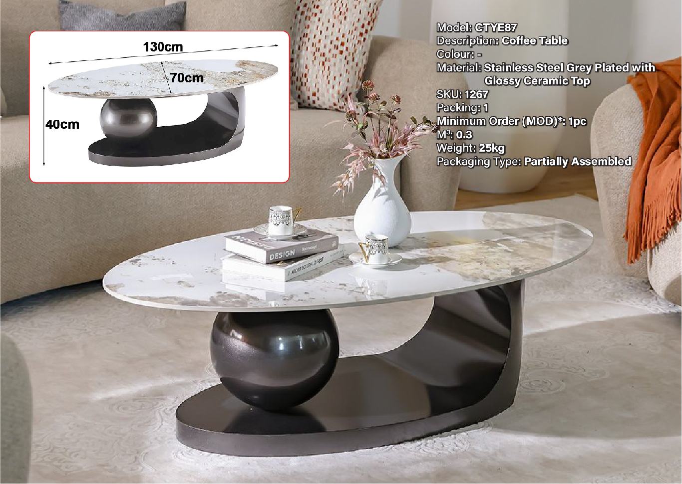 CT613 (700X500) CERAMIC COFFEE TABLE (GOLD) (CX)