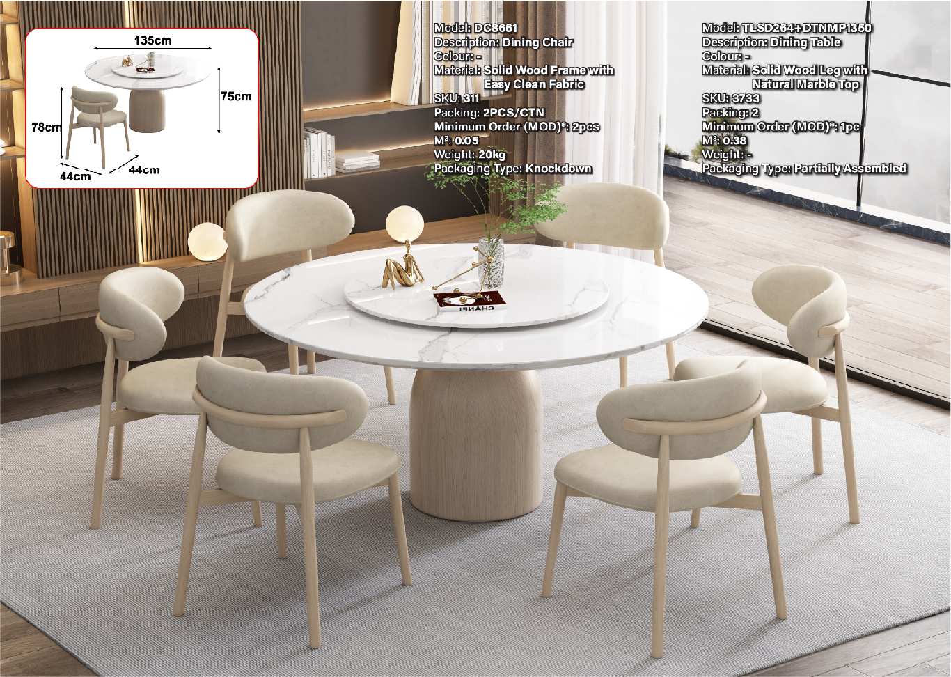 DC8661 DINING CHAIR (BEIGE EASY CLEAN FABRIC) (LEF)
