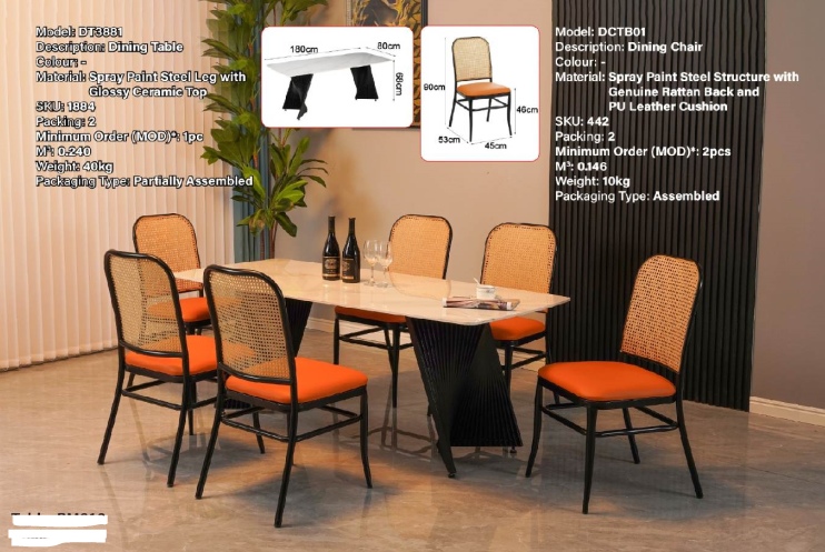 WOOD VENEER & SPRAY PAINT LEG DINING SET