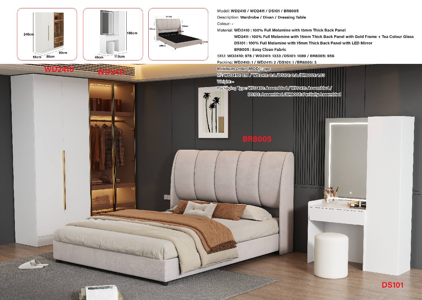 BEDROOM SET & WARDROBE & DRESSING TABLE