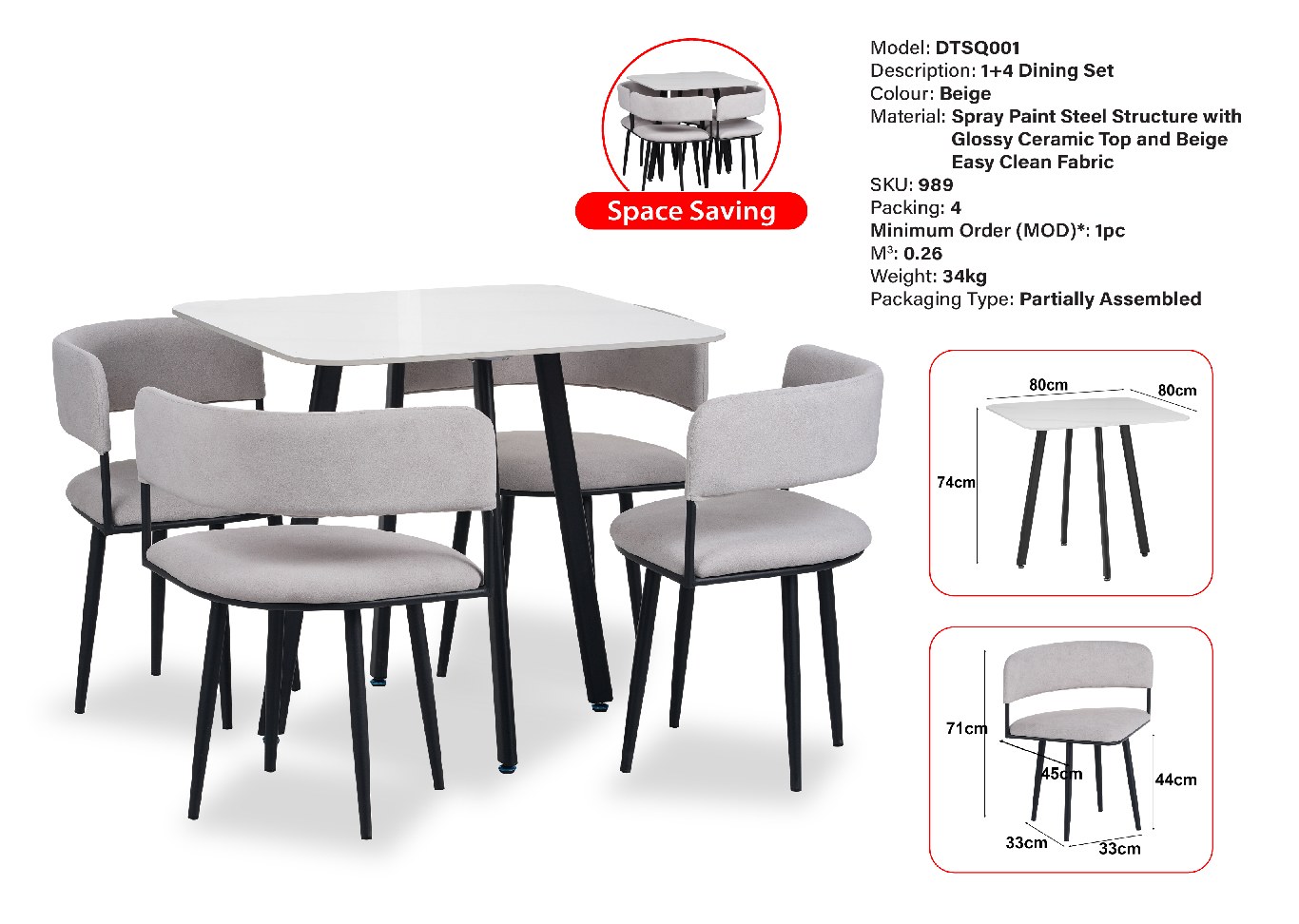 DTSQ001 DINING SET (1+4) (BEIGE EASY CLEAN FABRIC) (LEF)