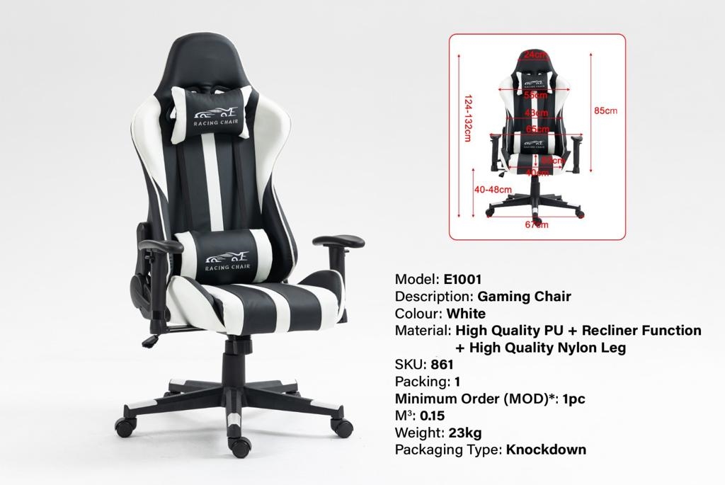 E1001 GAMING OFFICE CHAIR (WHITE) (CX) (LE) (OK)
