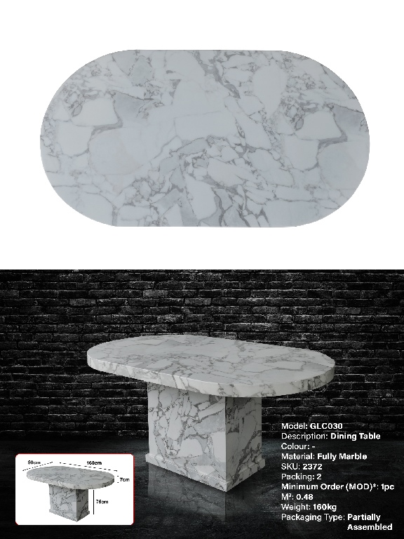 GLC030 (1600X900) FULLY MARBLE DINING TABLE (LE) (CX)