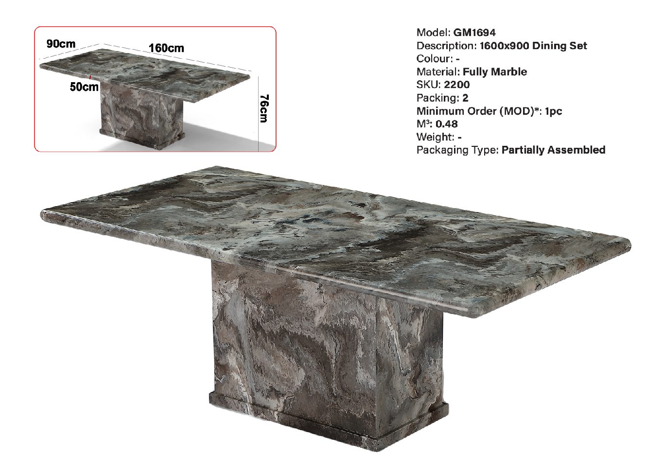 GM1694 (1600X900) FULLY MARBLE DINING TABLE (LE)
