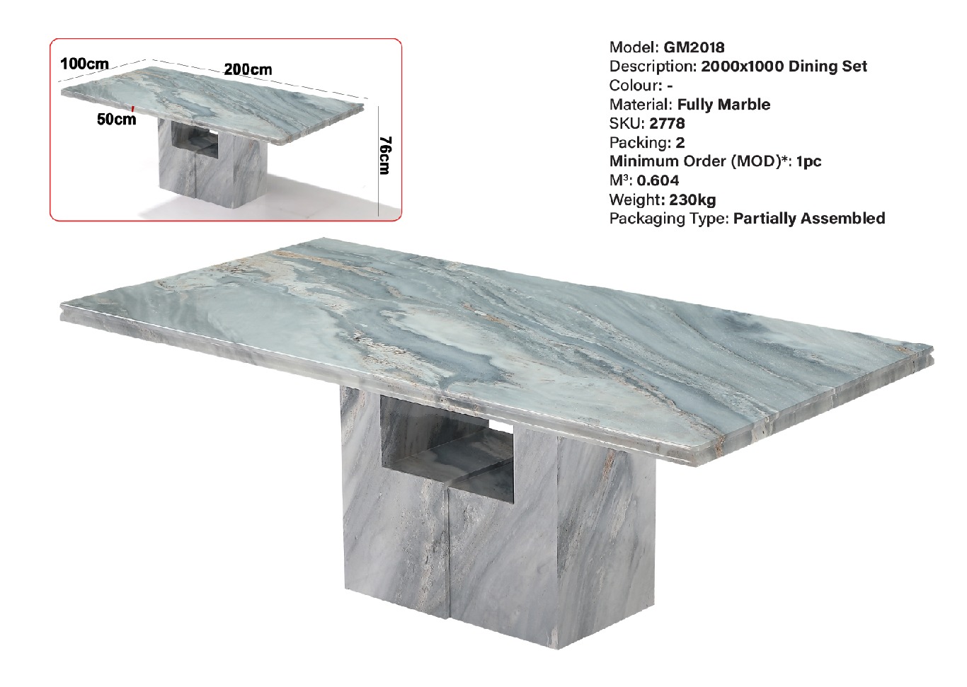 GM2018 (2000X1000) FULLY MARBLE DINING TABLE (LEF)