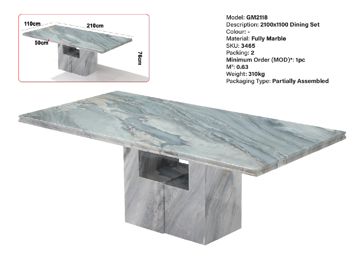 GM2118 (2100X1100) FULLY MARBLE DINING TABLE (LE) (CP)