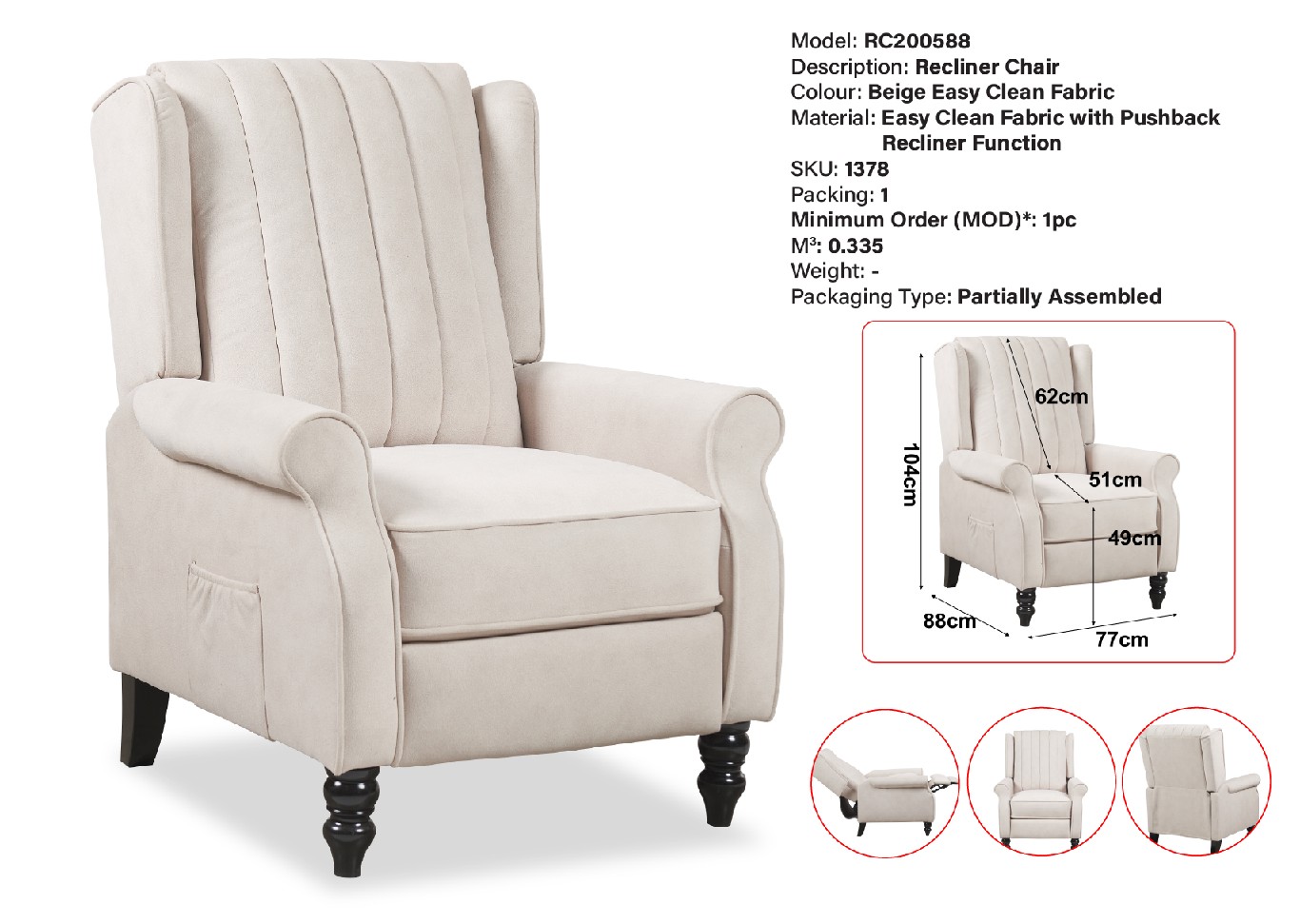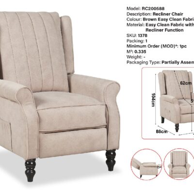 RC200588 RECLINER CHAIR (BEIGE EASY CLEAN FABRIC) (LEF)