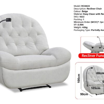 RC8820 RECLINER CHAIR (BEIGE EASY CLEAN FABRIC) (LEF)