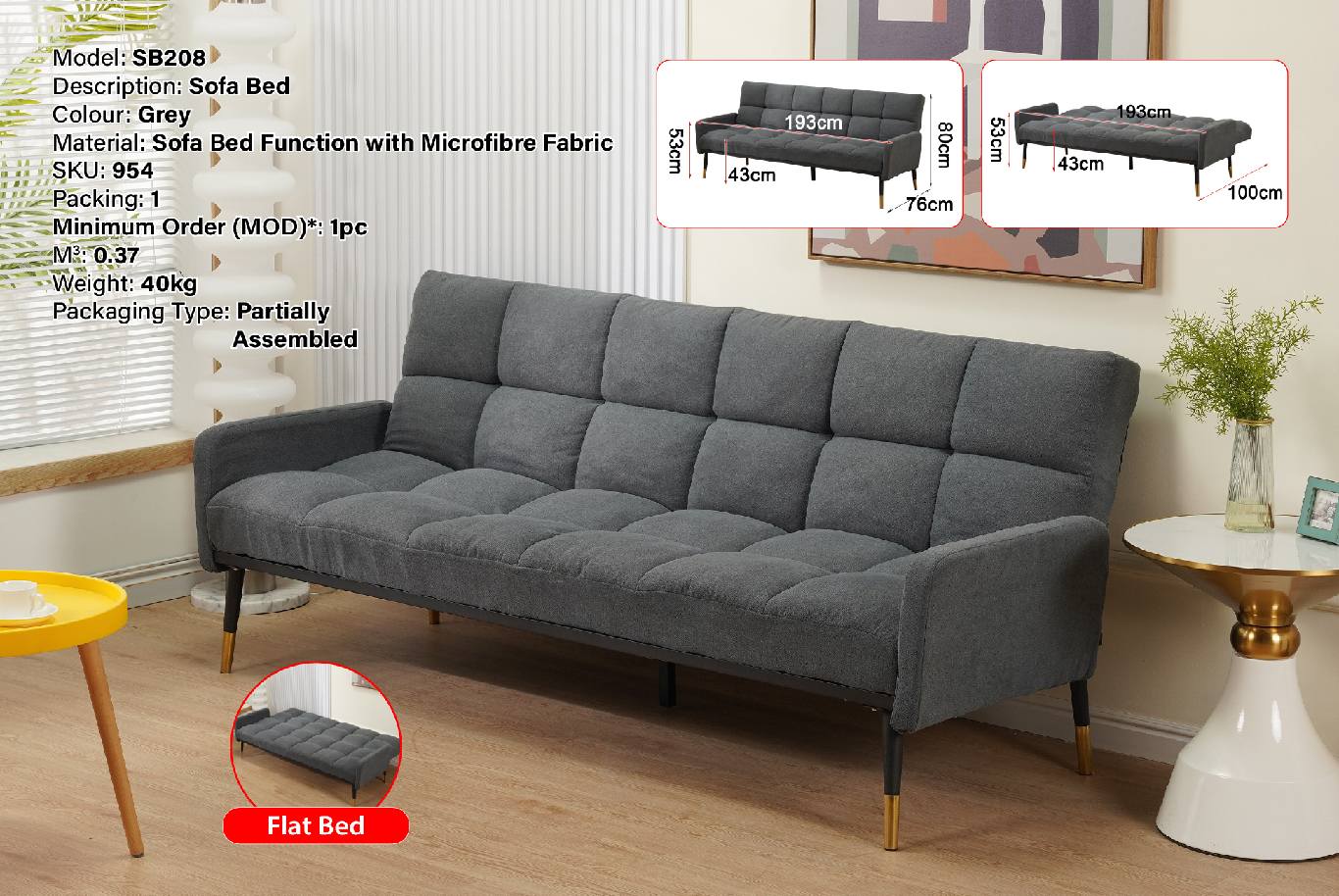 SB208 SOFA BED (GREY) (CX)