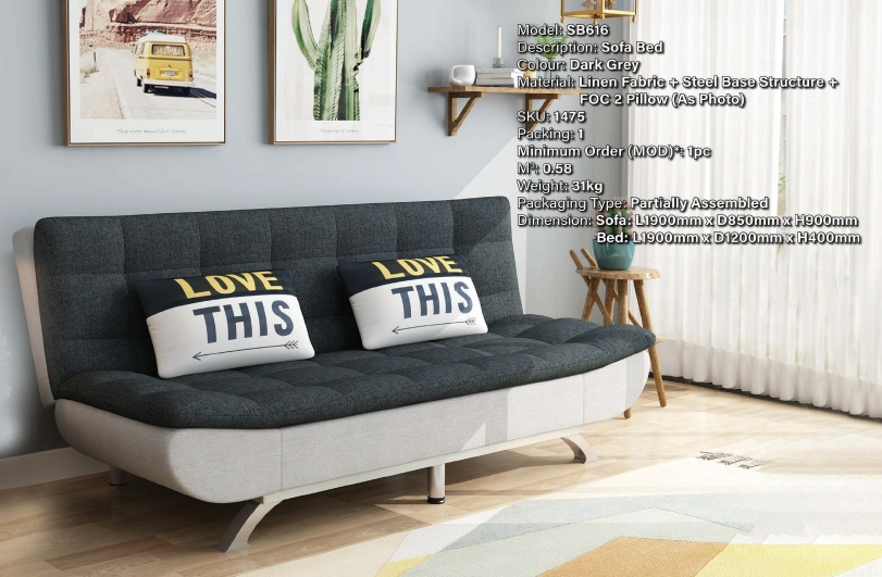 SB193 SOFA BED (DARK GREY) (CX) (OK)