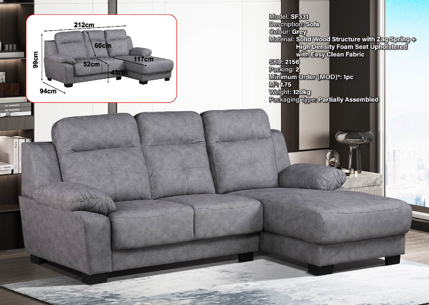 SF331 SOFA (GREY EASY CLEAN FABRIC) (LEF) (CP)