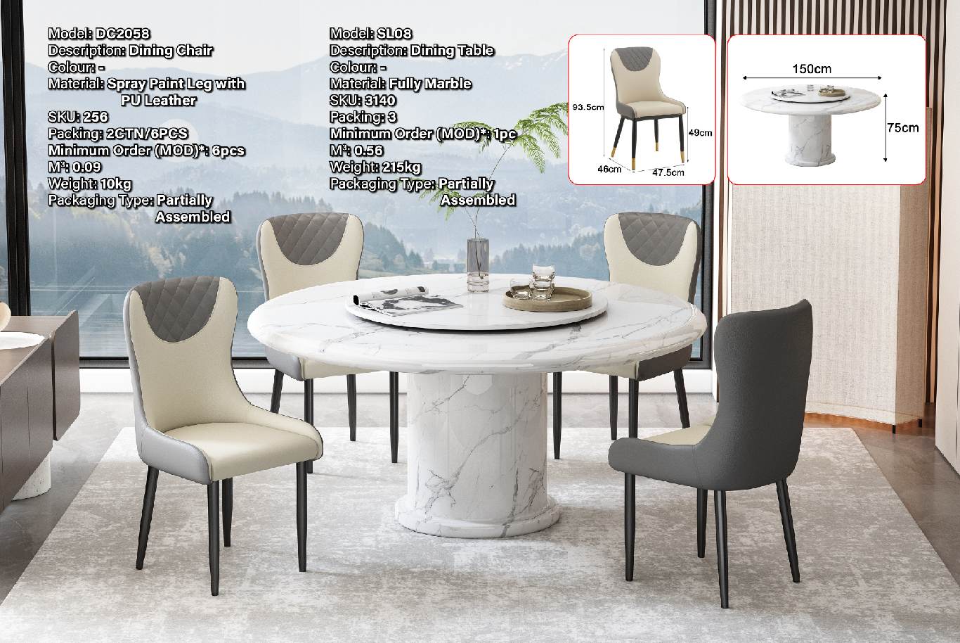 SL08 (1500X1500) FULLY MARBLE DINING TABLE (LE)